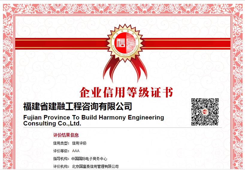 福建省建融工程咨询有限公司,福建省企业AAA信用评级