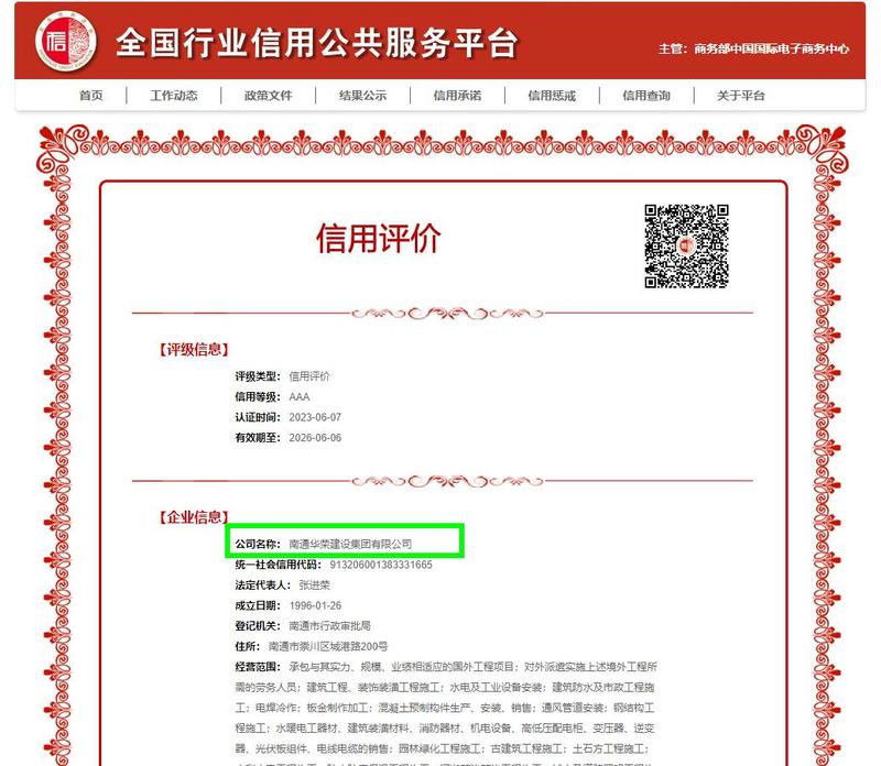 祝贺南通华荣建设集团有限公司荣获商务部中国国际电子商务中心AAA级企业荣誉国家级企业AAA信用评级中心![]()