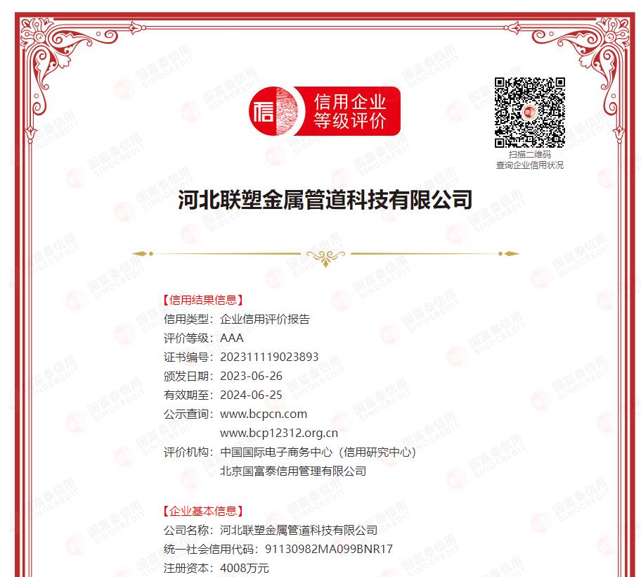 祝贺唐山宝乐智能科技股份有限公司、四川忠谊祥建设工程有限公司、河北联塑金属管道科技有限公司荣获国富泰信用AAA级企业荣誉北京国富泰信用管理有限公司【官网】![]()