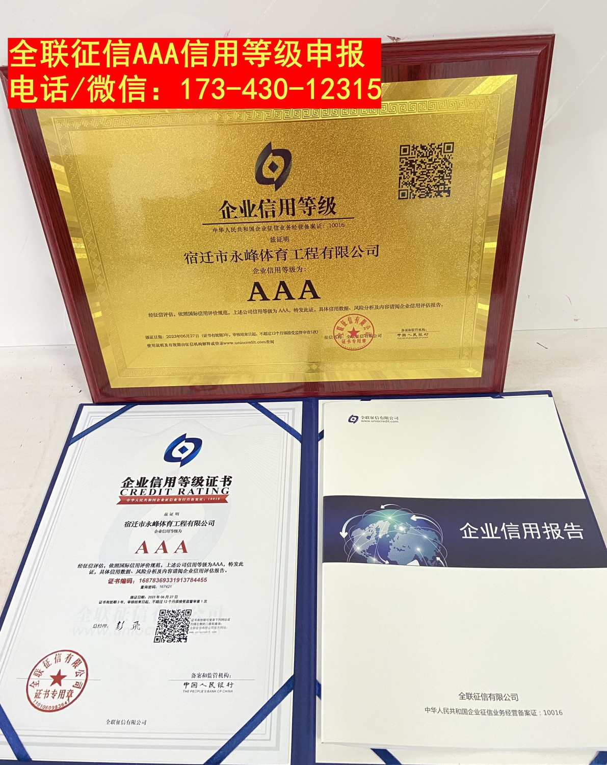 祝贺宿迁市永峰体育工程有限公司荣获全联征信AAA信用等级证书荣誉全联征信有限公司官网![]() 祝贺宿迁市永峰体育工程有限公司荣获全联征信AAA信用等级证书荣誉