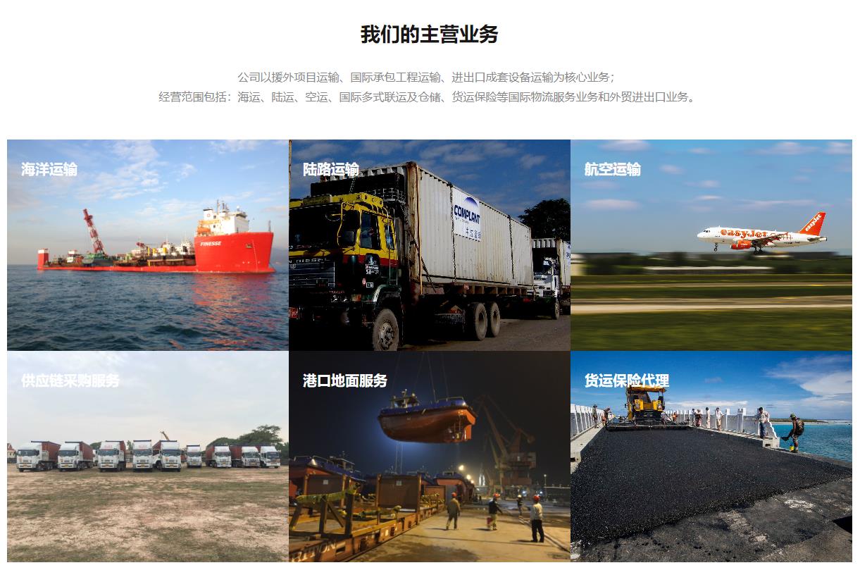 中成国际运输有限公司(COMTRANS)成立于1993年,是经国家原外经贸部批准的一级国际货运代理企业,隶属于国家开发投资集团有限公司(SDIC)成员企业中国成套设备进出口集团有限公司(COMPLANT)。 公司前身为国家援外运输专门机构,自1959年以来,一直负责我国政府对外经济技术援助项目物资的运输工作,在国内外享有良好声誉。 公司总部设在北京。在国内外海运港口和陆路、空港口岸设有分支机构,并与国内外多家船公司、航空公司、货运代理公司等运输企业建立了业务关系,形成了遍布全球的国际运输经营网络。 公司以援外项目运输、国际承包工程运输、进出口成套设备运输为核心业务;经营范围包括海运、陆运、空运、国际多式联运及仓储、货运保险等国际物流服务业务和外贸进出口业务。
